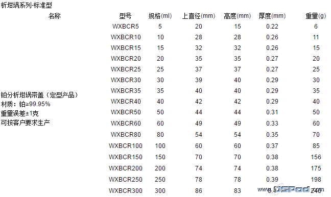 铂金坩埚 铂黄坩埚 铂金器皿 金坩埚 铂头钳(包坩埚钳) 银坩埚 铱坩埚